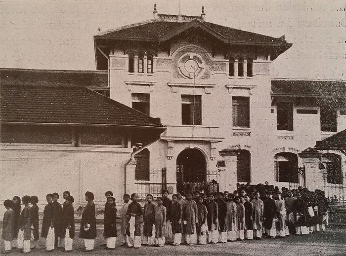 En France, en 1850, la loi Falloux a été établie et a instauré les droits de liberté de l’enseignement secondaire dont la création obligatoire d’une école de garçons dans chaque commune de 500 habitants et à la fois une école de filles dans chaque commune de 800 habitants ou plus. Absorbant cette pensée, en Indochine, dès 1861, le gouvernement colonial français a mis en place une éducation occidentale, d’abord en Cochinchine, puis au Tonkin et à l’Annam. En 1917, l’enseignement franco-vietnamien a été créé au Vietnam par la promulgation de Règlement Général de l’Instruction Publique par le gouverneur Albert Saraut (1917). L’Instruction Publique règle d’ouvrir des écoles primaires pour les garçons dans les communes et il est possible d’ouvrir au moins une école publique pour les femmes dans les provinces. Le contenu de l’enseignement est comme celui pour les garçons en complétant certaines matières spécifiques pour les filles. Grâce à cela, la conscience de la société envers les femmes, le rôle des femmes dans la famille et dans la société ont été considérablement modifiés. Un grand nombre de femmes ont participé à l’écriture, au journalisme, à l’enseignement, aux affaires … plus tard, ont participé à des activités révolutionnaires.